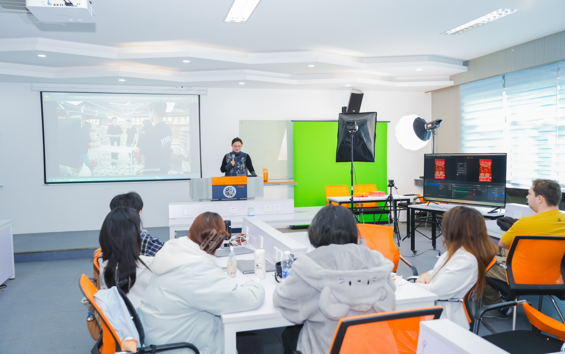 杜双双老师以“中国直播电商实践”为主题,为中法两校学生讲解了中国直播电商的发展历程、现状、相关工种及技能特点。通过精炼的讲解,让学生快速了解直播电商的核心要素。为增强实践性,杜老师把直播间搬进了教室,课程中特别设计了中法学生合作“特色饼干直播专场”的活动,让学生们沉浸式体验选品、策划、直播全过程。通过实战演练,法国学生们不仅掌握了直播技巧,还深刻感受到中国直播电商的魅力。