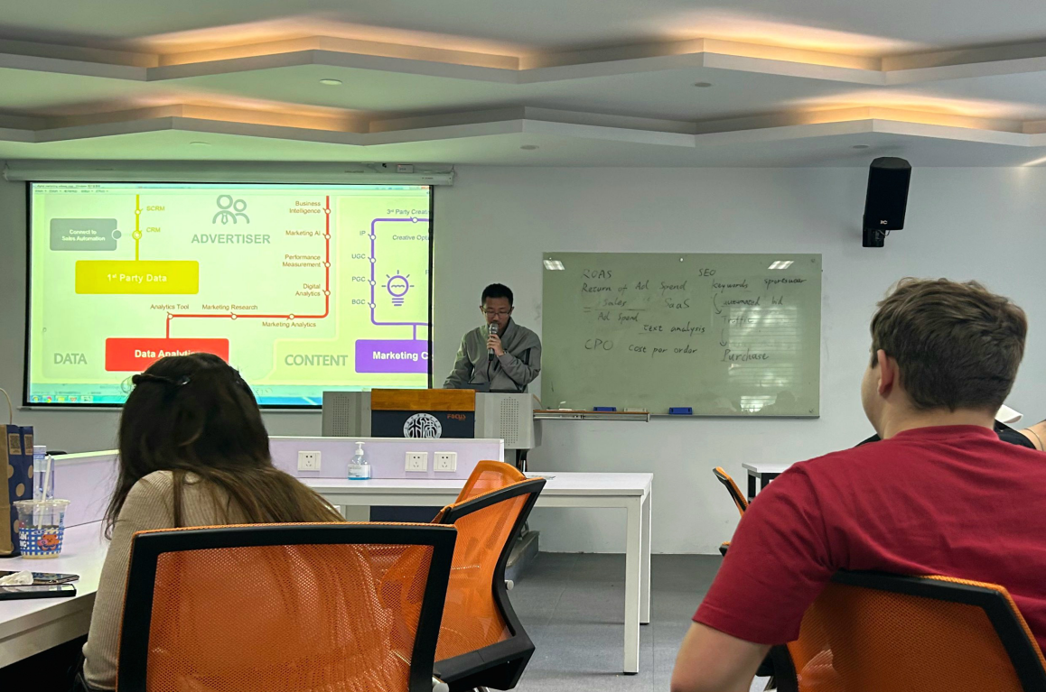 曹一帆老师以“数字营销在中国——战略、趋势、工具”为课题,向中法两校学生讲授了数字营销在中国市场的实践、中国主要社交媒体、人工智能等数字营销趋势以及数字营销监测行业和工具。曹老师通过中法两国在视频营销、社媒营销等案例的对比分析,引导学生们讨论与思考。