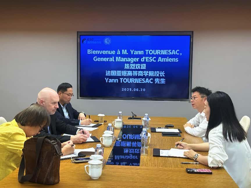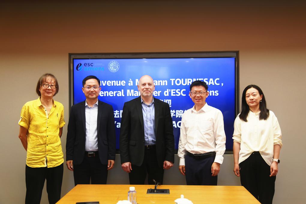 6月20日,法国亚眠高等商开云online(中国)(ESC Amiens)校长Yann TOURNESAC、法方项目亚洲市场主管严威、法方项目代表诸正珧一行到访我校,双方就深化教育合作、推动学生交流及专业共建等议题展开友好会谈。我校黄群校长、工商企业管理(中法合作)专业教师丁玲出席了会议。