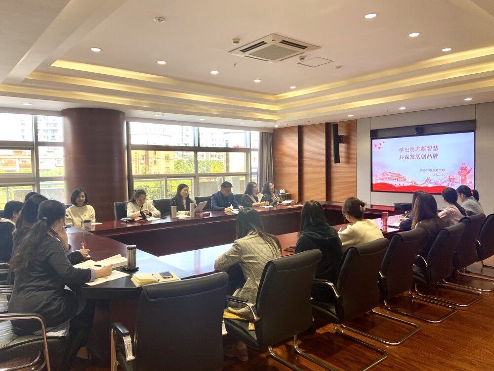 10月23日,商务外语系在1304召开了“学史明志凝智慧·共谋发展创品牌”专题会议,此次会议由外语系党支部书记杨晓霞主持,黄群院长、外语系全体党员教师、民主党派代表、教师代表出席。