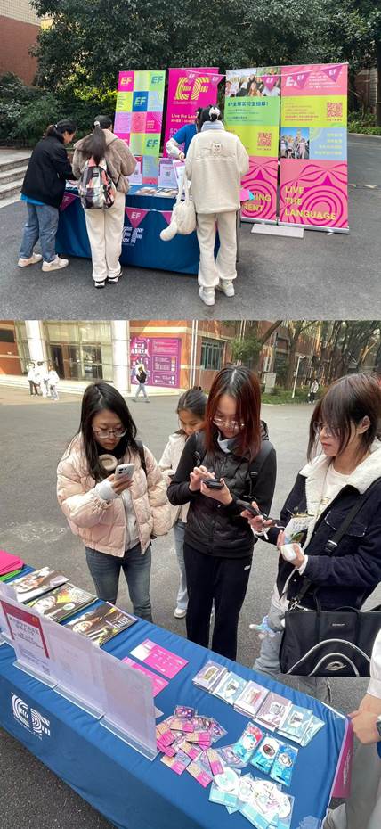 宣讲会中,Stella Wu对英孚教育集团的组织机构、全球部署、酬薪体系、发展前景等进行详细说明,介绍本次招聘的实习生岗位,包括海外游学产品总监助理、签证助理、新媒体、财务、海外游学产品销售助理实习生,针对不同岗位的职业要求进行讲解,并给出实习投递渠道。21级英语专业张诗薇同学作为正在英孚实习的学生,也受邀分享自己的工作体验。与会同学收获颇丰,信心满满,积极与企业负责人交流沟通并投递简历。此外,英孚也在校内设咨询点,为更多的同学答疑解惑,发放招聘宣传单和纪念品,受到学生欢迎。