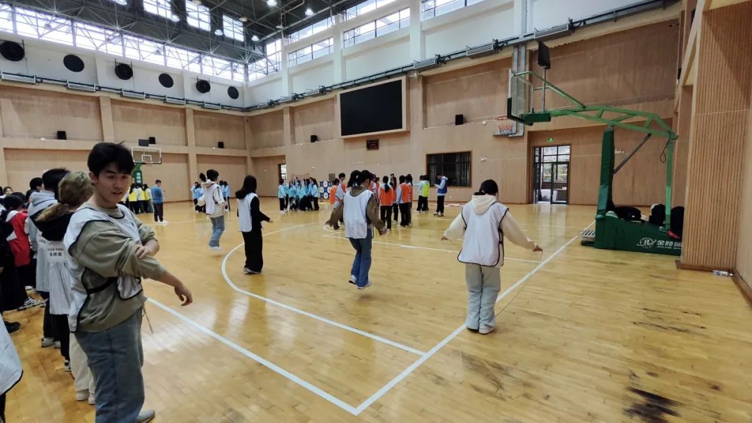 该任务中每位同学单人原地跳绳50个后,来回边跳绳边跨越篮球场短边。通过跳绳这种全身有氧运动,锻炼四肢肌肉,增强心肺功能。