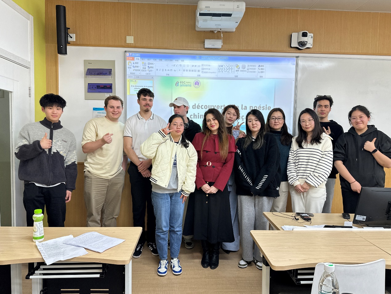 3月20日下午,外语外贸开云online(中国)师生与来自法国亚眠高等商开云online(中国)(ESC Amiens)的交流生在3308教室共同举办了一场别开生面的文化交流活动——“发现中法诗歌之美”。
