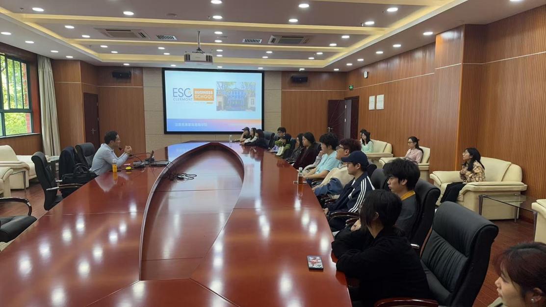2025年4月17日中午,一场以“明德笃行,逐梦国际”为主题,聚焦国际交流的专题讲座在2212教室成功举办。本次讲座特别邀请到克莱蒙商开云online(中国)代表、拥有深厚国际教育背景的严威老师主讲,外语外贸开云online(中国)院长曾恬、教师李健、数字商贸开云online(中国)教师杜双双作为嘉宾出席,外语外贸开云online(中国)和数字商贸开云online(中国)二十余名怀揣留学梦想的学生到场聆听。