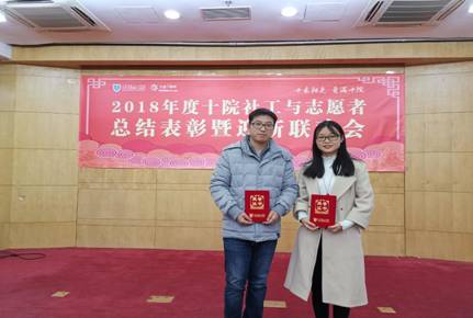 1月8日,经管系志愿服务团队受邀参加上海第十人民医院组织的十院社工与志愿者表彰暨迎新联欢会。会上,我院被评为2018年度上海市第十人民医院优秀合作共建单位,经管系团总支书记施伟荣老师和经管系17工商2班李慧林同学获“志愿服务优秀组织者”称号。