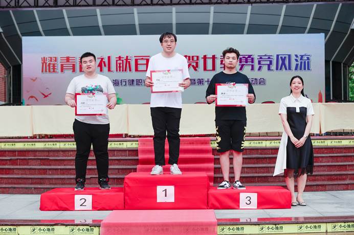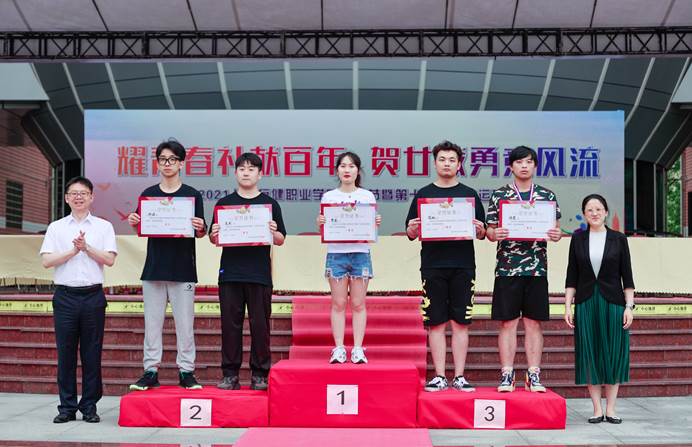 本届学生运动会开幕式中,学生大型团体操逐一登场,场面壮观,气势恢宏,同学们用高超的表演水平,赢得观众阵阵喝彩,将开幕式欢乐气氛推向高潮。运动会共设有10个大项,其中个人项目7项,团体项目3项,22个队伍参加,参与学生2000人次。同学们在比赛中挑战极限、超越自我、体验纯粹、享受快乐。各参赛队均赛出了精神、赛出了水平。经过一天激烈角逐,学前专业李军同学以15秒44的成绩打破男子往返跑校记录;汽车专业耐日乐和光瑞青同学以37个的成绩共同打破男子双杠臂屈伸校记录,广告专业殷丽同学以16.47秒打破女子往返跑校记录。最终,根据组委会公布的得分统计,学前专业获得男子组团体冠军,汽车和软件专业分别获得亚军和季军;英语专业获得女子团体冠军,20学前和19学前分别获得亚军和季军。