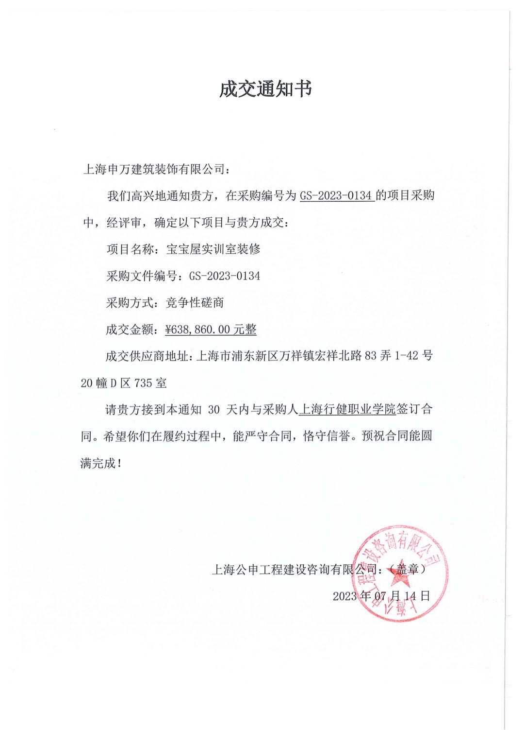 成交通知书 GS-2023-0134 宝宝屋实训室装修