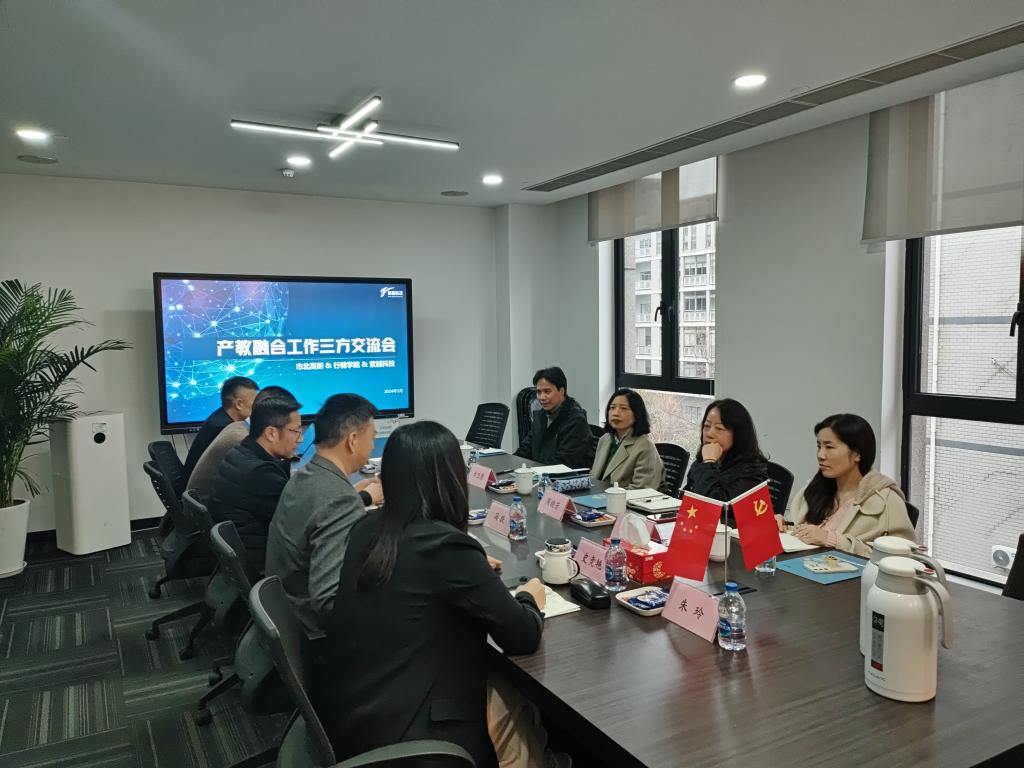 紫越科技副总裁、党支部书记冯跃、教育事业部总经理严雪峰、云舰服务事业部负责人祝科强及相关人员热情接待了行健一行。业务负责人祝科强详细介绍了紫越科技的发展历程、业务范围,以及公司校企合作的业务内容和工作成果。章卫芳副校长介绍了学校的基本情况以及行健一直以来秉承的“扎根区域经济、立足产教融合”的办学理念。她从市域产教联合体建设切入,从企业需求出发,重点就学生实习就业、育训结合、校企师资互聘、赛事服务支持以及园区业务承接等方面对市域产教联合体建设提出了意见、建议。与会各方就产学研用共享共建实践、人才共育、课程共建、资源共享等进行了深入研讨,并达成初步共识。
