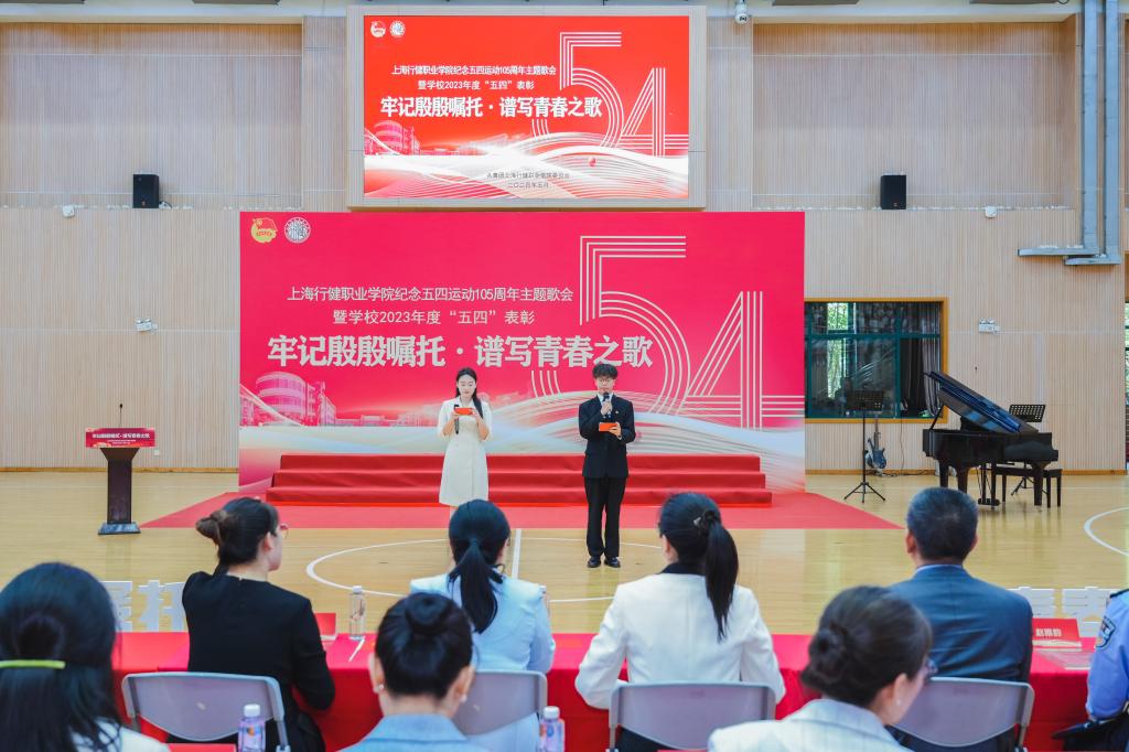 5月17日,开云网页版页面纪念五四运动105周年主题歌会暨学校2023年度“五四”表彰活动在体育馆隆重举行。团市委学校工作部相关同志、团区委副书记杨光、学校党委书记沈燕华、学校校长黄群、学校党委副书记李越、学校副校长顾斌、静安公安分局团委副书记赵雅韵、彭浦镇派出所团支部书记周昊,以及学校相关部门的领导、师生出席本次活动。本次活动由创意开云online(中国)朱祎伦和商贸开云online(中国)金灿同学主持。