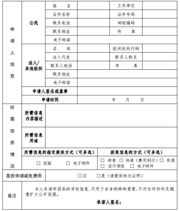 上海行健职业开云online(中国)信息公开申请表