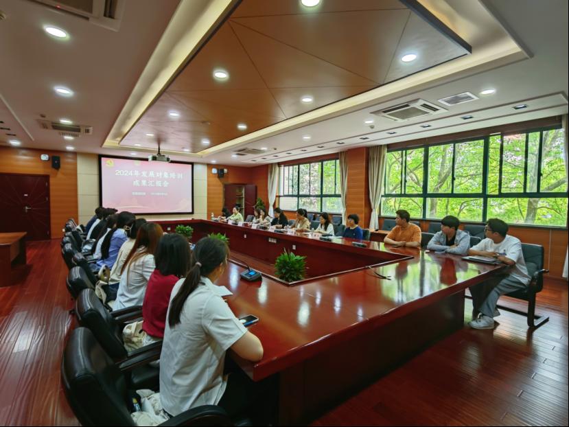 曹娜副部长首先对本期发展对象培训情况作详细介绍。15名参训学员在两个时间阶段,通过自主学习、集中培训方式,完成专题报告学习、红色实践基地参观学习、采访身边老党员、制作“读懂中国”微视频、结业考试等九项培训任务,深入感悟党的理论精神和实践精神,进一步端正入党动机,提高思想政治觉悟。此次培训的针对性和实效性较强,系统强化学员们的党性教育和政治淬炼,取得了良好效果。