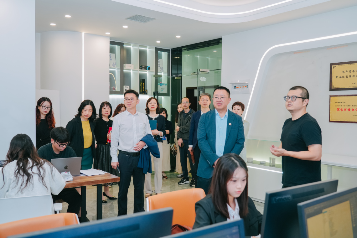 市北高新集团领导班子一行实地参观了学校智能制造实训室和直播电商实训基地。参观后,联合学习组在我校敏行楼召开学习研讨会。学习会上,双方围绕合作项目市域产教联合体建设工作进行了交流研讨。我校副校长章卫芳详细介绍了学校发展概况以及上海市北高新园区产教联合体工作成果和未来的建设思路。市北高新副总经理周晓芳重点分享了市北高新园区发展情况与产学研一体化工作情况与经验。自2023年6月起成功获批上海市首批市域产教联合体后,校企开展了更为紧密的产学合作,市域产教联合体工作思路清晰、项目具体、举措务实、成效显著,全方位彰显了学校肩负的育人使命与企业主动担当的育人责任。