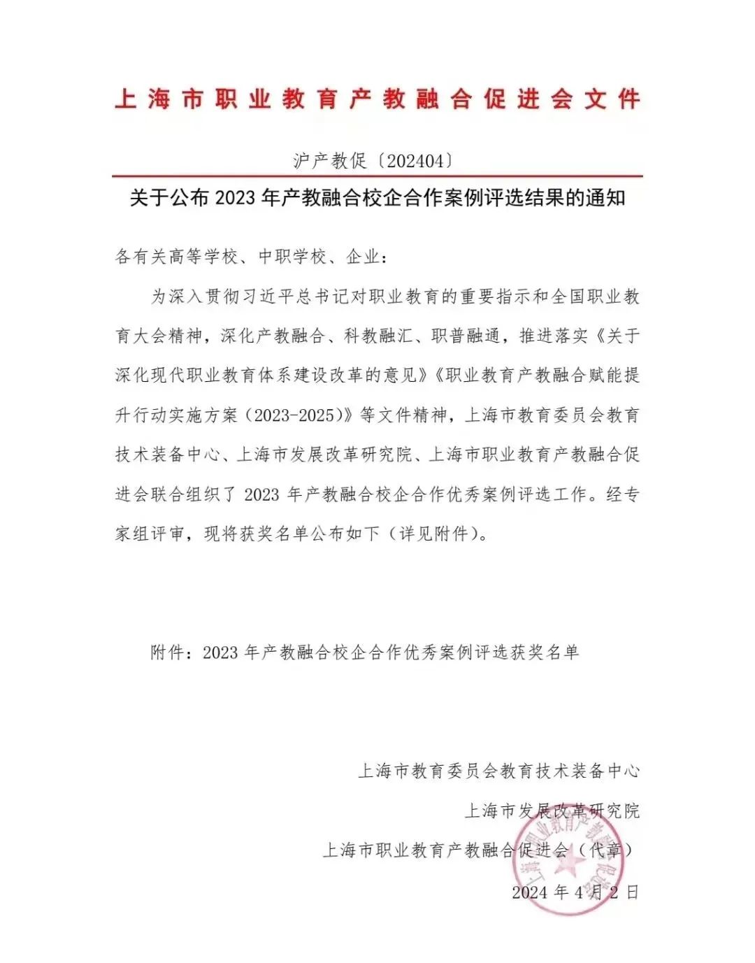 在中国现代化产业体系建设过程中,产教融合不仅是职业教育、高等教育发展的要求,也是行业、企业转型发展的要求。案例的成功入选及取得的奖项,是对学校产教融合工作的充分肯定,是检验学校多年来持续深化产教融合校企合作的发展成果。未来,学校将继续深入贯彻落实党和国家对职业教育发展的新要求,全面深化产教融合校企合作,促进教育链、人才链与产业链、创新链有机衔接,持续创新校企合作新机制和新模式。同时,也期待能够有更多优秀的产教融合案例涌现,为学校高质量发展、职业教育发展注入新的活力。(教务处、数字商贸开云online(中国)、教育开云online(中国))
