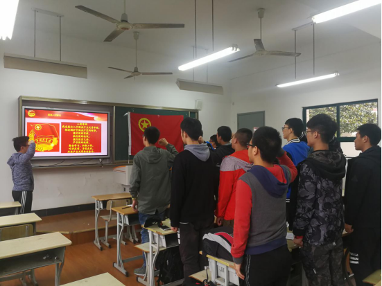 会上,团总支部副书记孙凡首先带领大家重温团章知识,包括:团旗和团徽的象征意义、入团应具备的条件、新时期共青团的历史任务、中国共产主义青年团的性质以及中国共产党和中国共青团之间的关系等。紧接着,大家一起学习党史,观看短片《少年,你了解中国共产党吗?》,观看过后,大家纷纷表示,作为年轻一代的我们,认真学习党史,对继承和发扬光荣革命传统以及党的优良作风,同时全面提升自己都是大有裨益的。随后,重温入团誓词,由信机系团总支部副书记孙凡领誓,誓言响彻整个教室,进一步增强大家对团组织的认同感和归属感。会上,大家还积极讨论发言,同学们纷纷表示,作为一名共青团员,作为中国共产党的助手和后备军,我们肩上所承担的任务和使命是艰巨的,唯有奉献我们的青春和梦想才能为今后建设社会主义和共产主义打下坚实基础。