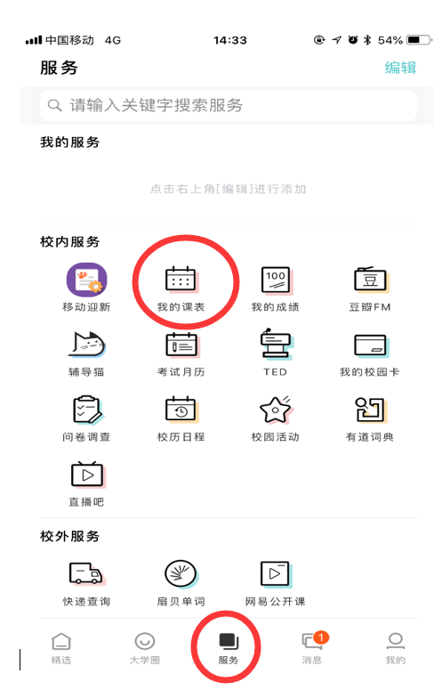 打开今日校园,选择服务,选择“我的课表”即可查询。