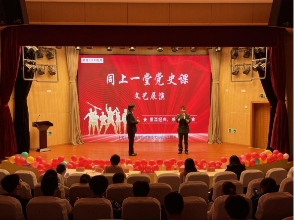 庆祝建党百年,传承红色基因,奋进十四五征程。为了引导学生知史爱党、知史爱国,从党史中汲取持续深厚的奋斗之力,10月28日下午,信机系于1109室开展“同上一堂党史课”文艺展演活动。信机系党支部书记王永老师、宣传部余宁老师、信机系团总支书记庄淑珺、信机系辅导员李琴、姚婧婧、卜秀新和近180名学生参与本次活动。