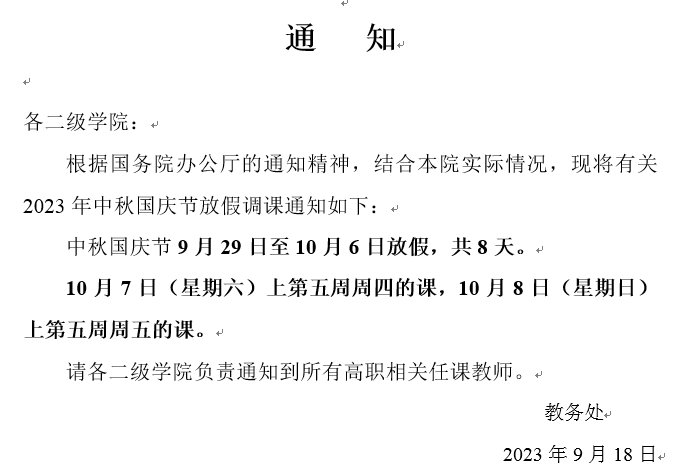【来源:2023中秋国庆节放假调课通知 | 发布日期:2023-09-28】
