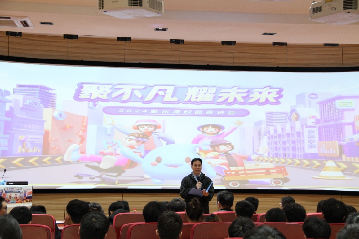 宣讲会开始前,信息开云online(中国)院长陈品华致欢迎词,欢迎聚水潭各负责人来我校宣讲。