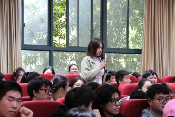 随后,应用支持部经理萱草(金露静)围绕公司运营项目、运营模式以及公司福利待遇等多方面进行宣讲,让同学们对企业发展、招聘岗位有了更进一步的认识。接着,聚水潭售后团队业务负责人云锦(陈健)对在场学生深深寄语,并用六个字总结“兴趣、心态、责任”,为学生迈向社会授予经验。同学们认真聆听宣讲人的讲解并积极参与互动环节,更深入了解应聘要求以及其岗位的主要职责。