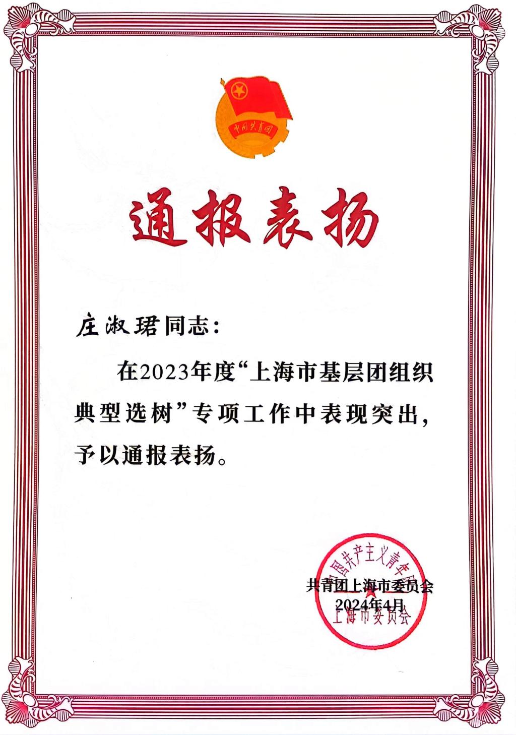 为深切贯彻习近平总书记对青年工作的战略指引,上海市团市委全力推进“三全育人”综合改革的深度与广度,致力于强化共青团在引领青年方向、汇聚青年力量、服务青年需求上的使命担当,旨在全面提升团组织的引领力、组织力与服务力,树立鲜明典范,驱动新时代基层团建迈向高质量、创新型发展新阶段,上海市团市委开展了2023年度基层团组织典型选树专项工作。近日,信息开云online(中国)团总支在2023年度“上海市基层团组织典型选树”中荣获通报表扬。