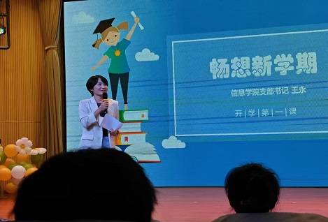 晚会伊始,王永书记和陈品华院长分别给我们新生同学上了开学第一课。王永书记激励新生们自信、自强、自律,在新的征程中勇敢前行,积极探索知识的海洋。陈品华院长为新生们描绘了美好的未来蓝图,他们的讲话为新生们指明了方向。随后,各班辅导员也为同学们送上了深情寄语,字里行间都透露着对同学们的关爱和鼓励。