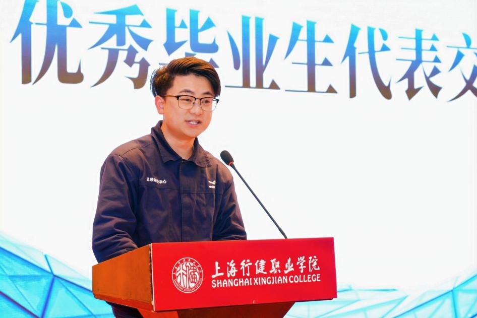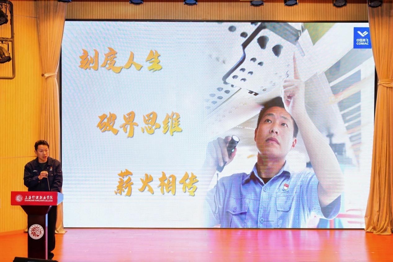 会上,还邀请到了上海工匠杨颖华先生。他用三个关键词“刻度人生、破界思维、薪火相传”总结了自己在国产大飞机装配工作中的经历和心得,优秀毕业生代表蒋羽星和张原陶也交流了他们的职场经历与体会,为同学们提供了宝贵的职场经验和启示。